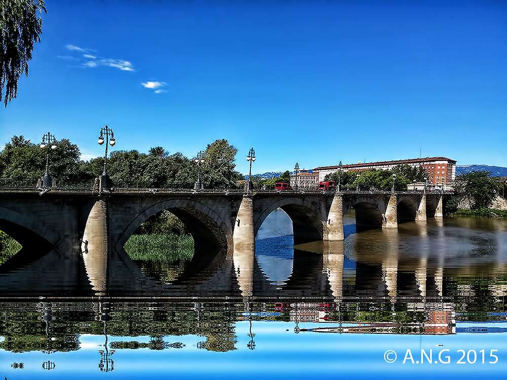 石桥洛格罗尼奥是四桥横跨埃布罗河路过的拉里奥哈首都之一。它也被称为圣胡安奥尔特加桥,指的是左岸存在(在传统上谁原桥建设者相信圣人的荣誉)教堂。目前的建筑,费尔明曼索德祖尼加, 1884年红枣,老桥在1871年崩溃之后。
